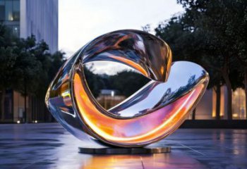 • 《鎏光環(huán)旋》—— 城市天際下的鏡面不銹鋼創(chuàng)意抽象景觀雕塑